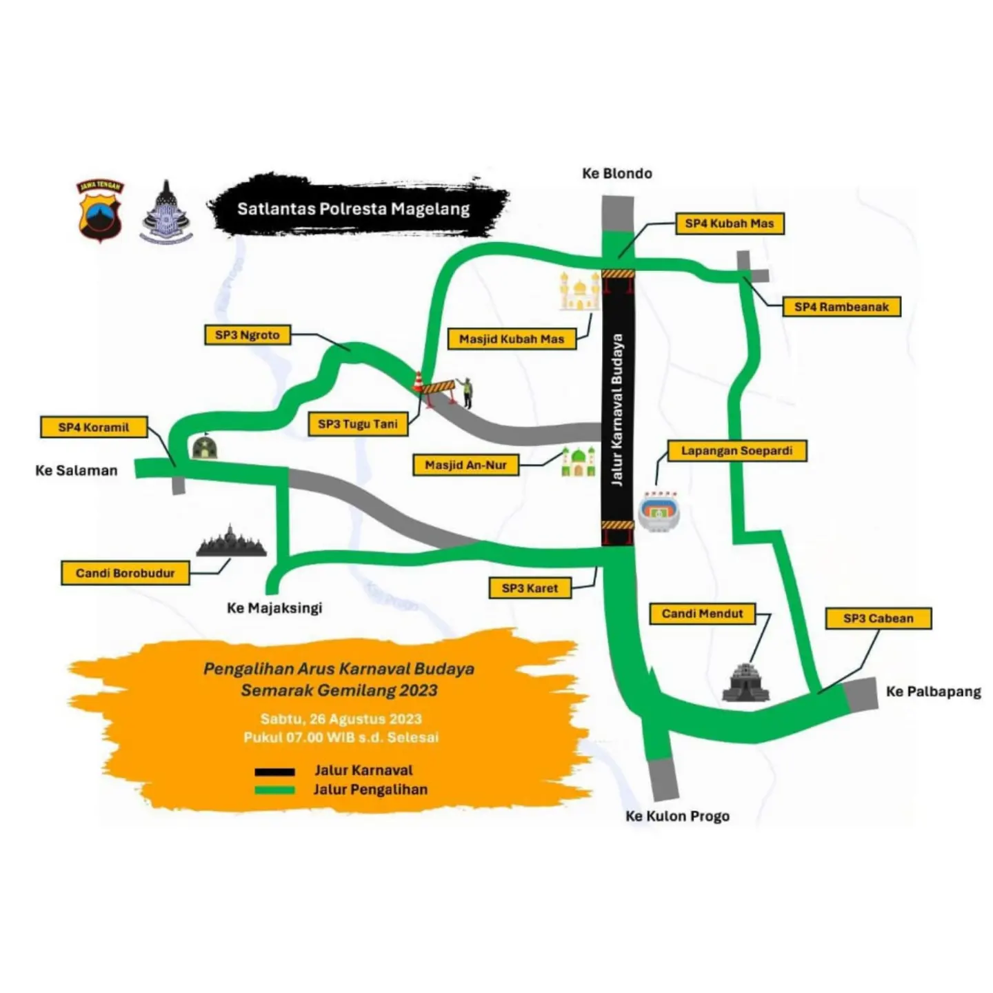 Karnaval Budaya Kabupaten Magelang, Hindari Jalan Ini Agar Tidak Terkena Macet magelangnewsAgustus 25, 2023 Halaman: 1 2 Pos terkaitTak Disangka! Bakso Yuti dari Karet Magelang Sajikan Hidangan untuk PresidenJenazah Serka (Anm) Muhammad Nur Ichwan Tiba di Rumah Duka, Akan Dimakamkan di TMP Giriloyo MagelangRumah Duka Sertu Ichwan Dipenuhi Karangan Bunga, Tamu Terus Berdatangan dari Berbagai InstansiPrajurit Asal Magelang, Sertu Ichwan Gugur dalam Misi UNIFIL di LebanonDalam Masa Pemulihan, Bos Pabrik HS Hadir Langsung Berikan Umroh Gratis Untuk 150 Karyawan danSatlantas Polresta Magelang: Siapkan Pos Pengamanan dan Rekayasa Lalu Lintas Antisipasi Arus Mudik