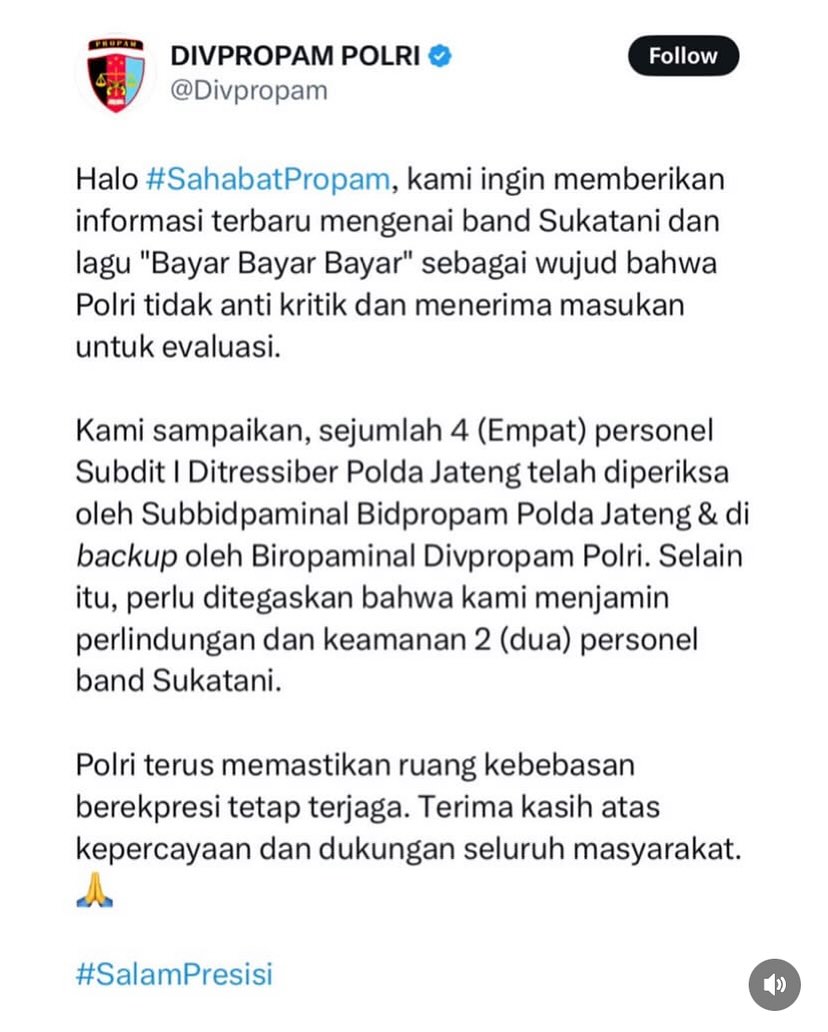 Propam Polri Periksa 4 Anggota Polda Jateng Terkait Dugaan Intimidasi Personil Band Sukatani BaraFebruari 22, 2025 Halaman: 1 2 Pos terkaitViral Pria Diduga Pura-Pura Pingsan di Pasar Muntilan, Akhirnya Ngamuk Saat Tak Ditolong WargaDemi Merawat Ibu yang Mengalami Depresi, Septian Rela Resign dan Berjualan Tahu Krispi di RumahPresiden Prabowo Pulihkan Nama Baik Dua Guru Luwu Utara yang Dipecat Karena Bantu 10 Guru Honorer Belum DigajiViral! Pedagang Leker di Grobogan Bagikan Uang ke Siswa agar Beli Dagangan Penthol yang SepiKisah Pilu Randika Alzatria Syaputra, Pemuda Rantau Asal Lubuklinggau Diduga Tewas Kelaparan: Tinggalkan Surat Haru untuk KeluargaAksi Cepat Satlantas Magelang Kota Kawal Ambulans ke RST Soejono Viral di Media Sosial