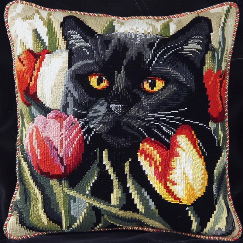 Cross stitch pillow kit: Pre-printe color pillowcase, Eco-cotton threads, Instructions, embroidery needles, scissors, threading tool and Thimble. Material: ecological cotton thread, with bright colors, not easy to knot, and durable.It is a three-layer woven fabric with enough thickness for easier stitching.Completed size is 18x18inch.Simple and fun: Stamped Embroidery Pillowcases accurately pre-printed pattern make the cross-stitching work very easy and fun, which is very suitable for those who just start cross-stitch.Precious gift:Handmade cross stitch pillowcase done by yourself,It can be used as home decoration or as a wonderful gift for family, Personal embroidery is a special and meaningful gift for them. Suitable for beginners: Cross Stitch Pillow Cases with precise stamped pattern,ease of stitching.Complete how-to instruction, suitable for beginners as well as experienced stitchers. You can stitch it within a few days.After-sales service: If you run out of threads or not enough, please contact us, we will reply within 24 hours, please buy with confidence.(Contact us to customize any pattern of Needlepoint Pillow Kit)