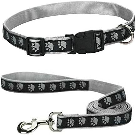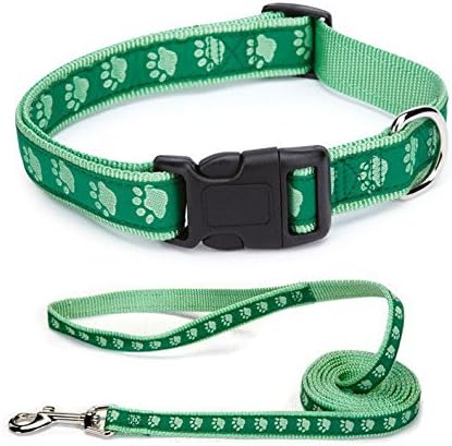 Two Tone Pawprint Collar & Lead Sets for Dogs Matching Walking Harnesses are available and sold separately. Please see item # 351291727519 Our Two Tone Pawprint Dog Collars & Leads are high-quality nylon dog collars & leads with an adorable paw print design. Each collar has a quick release buckle for a comfortable, easy fit. And each lead has durable nickel plated metal hardware. Our Two Tone Paw Print Collars & Leads give pets a classic look that’s paws-itively stylish. Ribbons with a popular paw print design are sewn onto durable nylon Reinforced stitching at stress points Adjustable Collars have plastic, quick-release buckles for an easy, comfortable fit Leads have Nickel-plated swivel clip Our Two Tone Pawprint Dog Collars & Leads are available in Black, Blue, Pink, Green, and Purple. Sizes are listed below. Available in our Convenient, money saving Collar/Lead Combos. All size combos include a 4' x 5/8 lead except for large which include a 6' x 1 LeadExported By ExportYourStore