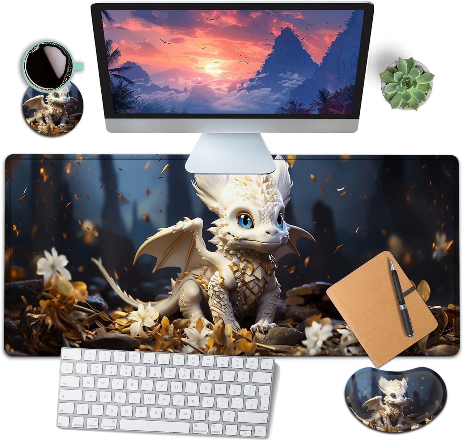 ❀【Extended Large Size】The size of large mouse pad for desk is 31.5×11.8inch,which is big enough to fit your full-sized keyboard, mouse, laptop,or other item on the desk,providing more space for professional gaming or office work. Besides,you can also use this extended mouse pad as a desk pad,writing pad,platform protection mat. Keep your desk clean and uncluttered. ❀【Ergonomic Design】The curved and shape design of wrist support set fit perfectly on the wrist. The soft memory foamand filled cushion part will slowly bounce back when your hand leave it, not easy to out of shape. Providing good support to your wrist, maximum relieve wrist stress and tiredness.❀【Ergonomic Design】The curved and shape design of wrist support set fit perfectly on the wrist. The soft memory foamand filled cushion part will slowly bounce back when your hand leave it, not easy to out of shape. Providing good support to your wrist, maximum relieve wrist stress and tiredness.