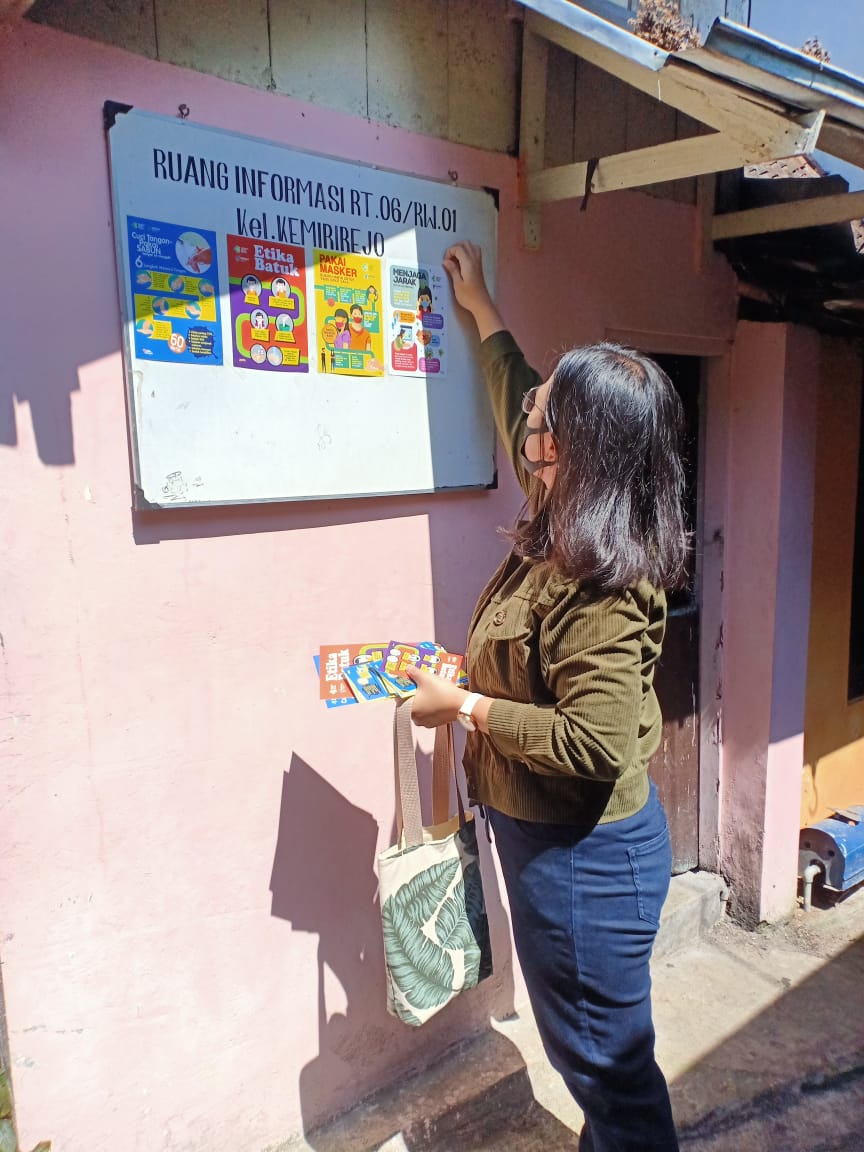 Dari hal tersebut juga dibawah bimbingan dari bapak Drs. Wahyudi, M.Pd sebagai Dosen Pembimbing Lapangan (DPL) Theeva memutuskan untuk memberikan edukasi kepada masyarakat di wilayah domisilinya mengenai pentingnya menggunakan masker, etika batuk, cara mencuci tangan yang benar menurut WHO, dan juga mengenai physical distancing.